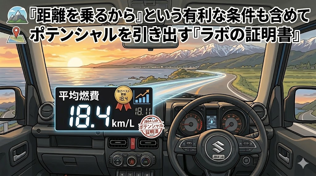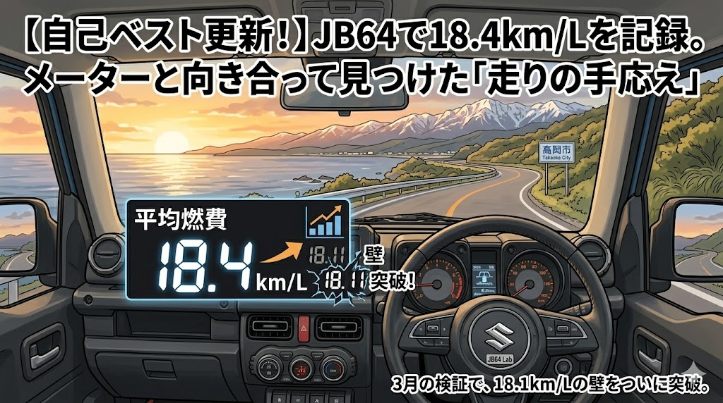 3月の検証を進める中で、嬉しいニュースがあります。 前回のベスト記録「18.11km/L」を塗り替え、実測で18.4km/Lという数字を出すことができました!